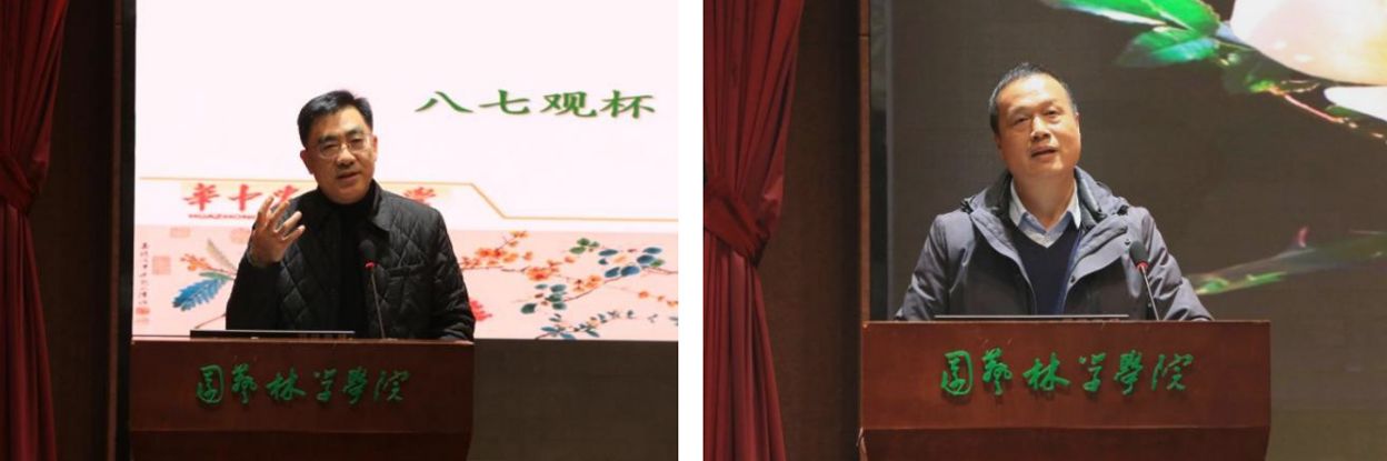 在热烈的掌声中,吴全斌会长和周继荣副院长分别致辞。吴会长带领大家回顾了“凭谁花解语”竞赛的历史,他感慨于同学们的出色表现,并对同学们表示了殷切的关心和对未来的期待。周院长真诚地赞誉了同学的积极参与、学院的鼎力支持、老师的辛勤准备,不仅期望同学们能坚持传承中华花文化,更希望大家通过参加此类活动,将传统文化和科学研究结合,进一步提升自我的科学素养与沟通能力。