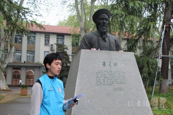 张之洞塑像前,设施2302班蔡远泽向大家介绍着张之洞先生:“张之洞先生提出了‘中体西用’的思想主张,主持制定‘癸卯学制’,并且开办了湖北农务学堂,他对我国现代学制、高等农业教育的发展与完善具有重要影响。”蔡远泽还强调,我校办学的理念之基与文脉之源,便来自于张之洞先生的“手脑并用,知行合一”及“凡民俊秀皆入学,天下大利必归农”。“知行合一”是张之洞先生对我校师生的勉励,蔡远泽借此希望同学们能够认真学习专业知识,投身我国农业建设。